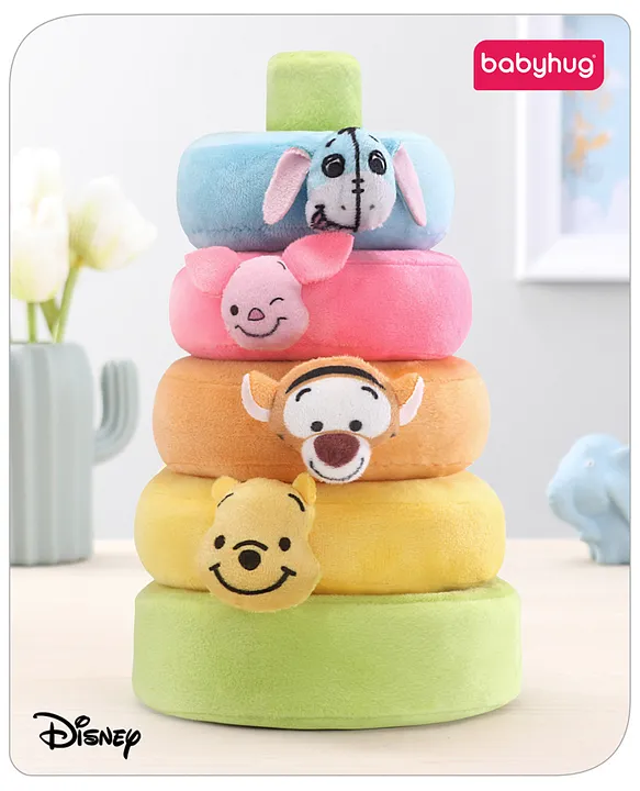 - Babyhug Disney Babyhug 5 Pcs Disney Winnie The Pooh And Friends Plush Stacking Ring| 4 Rings and 1 Base Soft Stacking Toy| STEM Montessori Learning Toy for 1 – 3 Years Kids| Boost Motor Skills Creativity & Hand Eye Co-ordination| BIS Certified