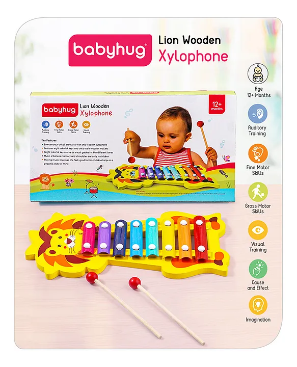 - Babyhug Lion Wooden Xylophone | 8-Key Musical Toy with 2 Mallets | Educational Instrument for Toddlers | Multicolor Design | Promotes Early Music Learning & Coordination | BIS Certified