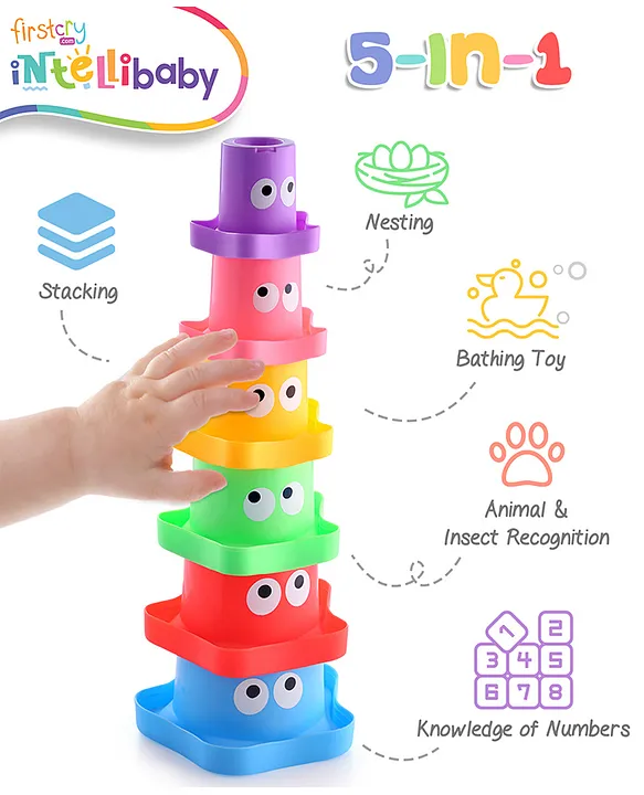 - Intellibaby 5-in-1 Multicoloured Star Shaped Monster Stacking Cups | Bath Time & Outdoor Sorting & Nesting Water Play | European Safety & BIS Certified