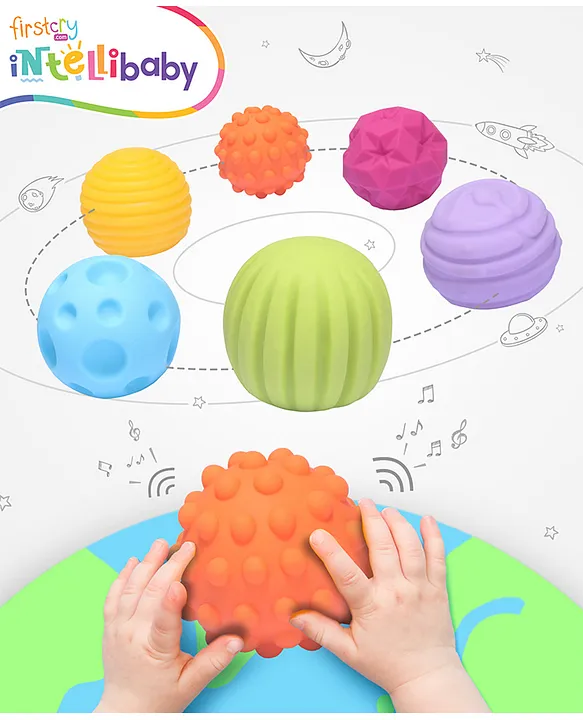 • Intellibaby Premium Bath & Squeezy Sensory Textured Balls | Pack of 6 Colourful Squeaky Baby Bath Toys| Non-Toxic, Safe, Sensory Play | Water Toys | Paediatrician Approved | BIS Certified