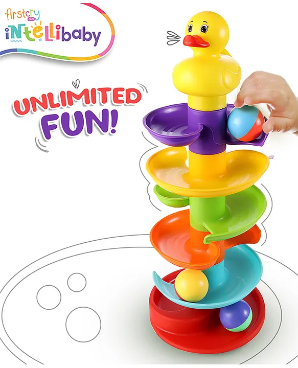 - Intellibaby Roll-A-Round Waterproof Spiral Tracker | 6-Layer Ball Drop & Roll Swirling Tower | Educational Toy For Babies & Toddlers | Stacking & Racing Fun With 3 Spinning Activity Roll Balls | Ideal for Gifting – Multicolour