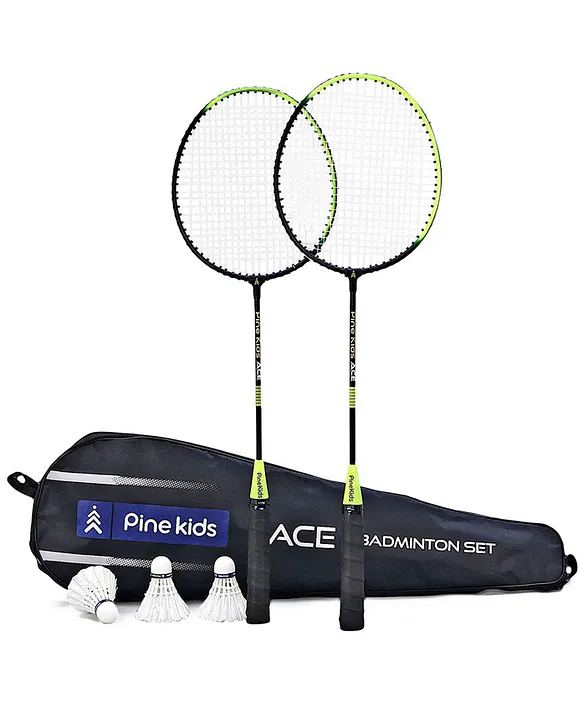 - Pine Kids Badminton Set – Green & Black | Includes 2 Lightweight Rackets & 3 Shuttlecocks | Strong Frame, Easy Grip Handle | Perfect Outdoor/Indoor Sports Game for Kids.
